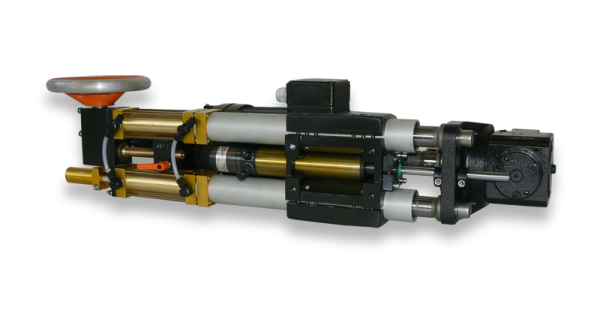 A special-application version of the PSMKH model series is designed as a cutting unit bearing circular knives. It is used for cutting hoses or rubber profiles to length.